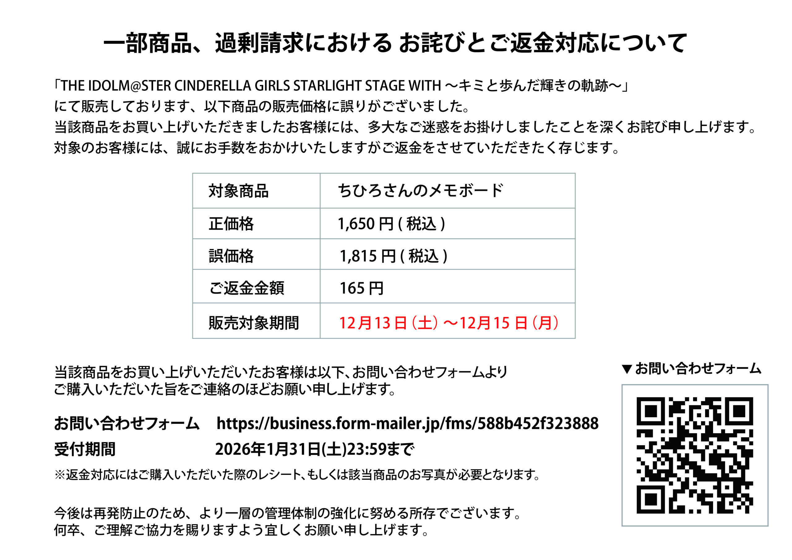 対象のお客様は同様に返金のご対応をさせていただければと存じます。